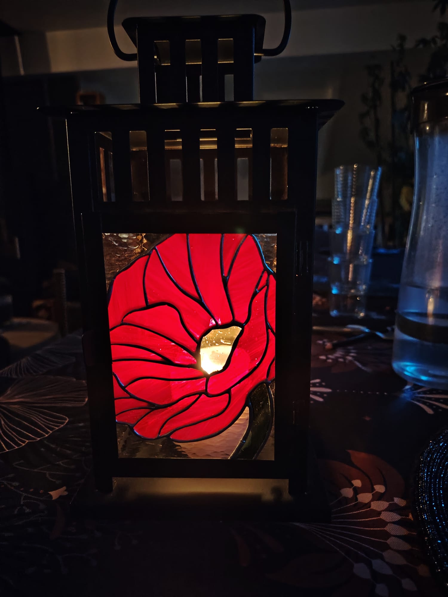 Lanterne façade fleur, côtés unis ambre clair