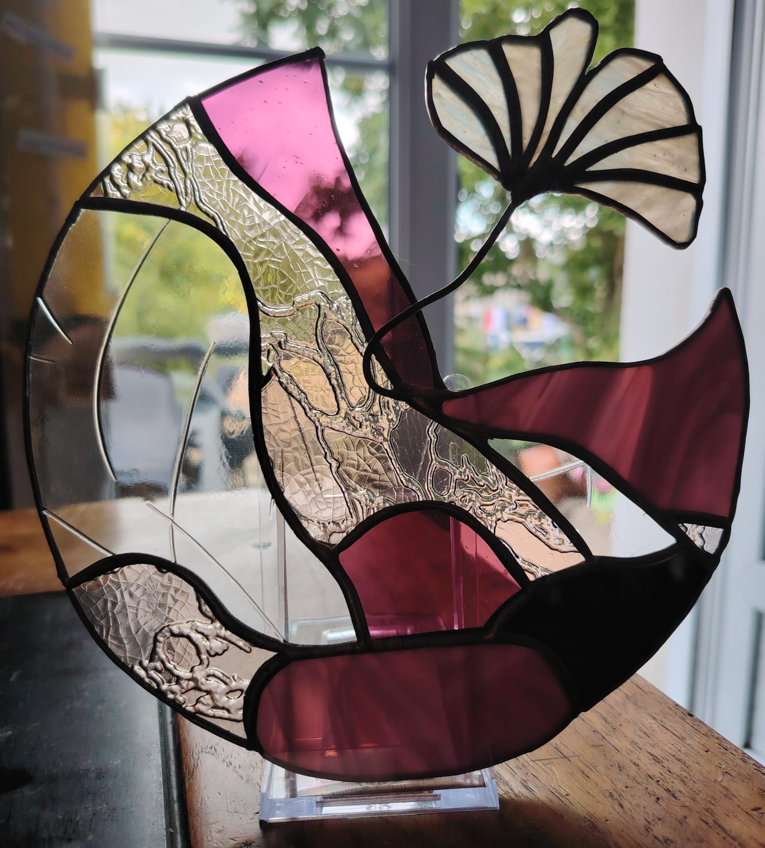19.5 * 19.5. Verres de différentes couleurs et textures. 80€ hors frais de port. Support plastique en option : 2€