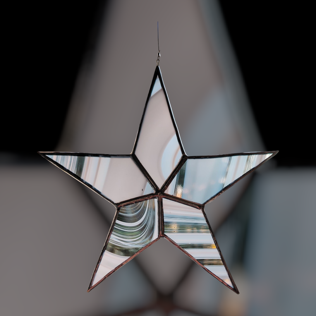 Verts clair opalescent, moyen translucide et sapin irisé, étoiles - fil de suspension acier inox tressé fourni. 100 € hors frais de port
